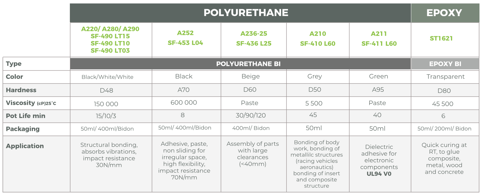 Le collage adhésif est une méthode d’assemblage précise et efficace qui offre de nombreux avantages par rapport aux techniques d’assemblage mécanique traditionnelles telles que le rivetage, le soudage ou le vissage. Il permet d’obtenir une liaison continue et uniforme qui répartit les contraintes mécaniques sur toute la surface, ce qui se traduit par une résistance à la fatigue accrue. Cette méthode permet également un assemblage plus léger, grâce au faible poids des adhésifs et à la possibilité d’utiliser des matériaux plus fins. Le choix du bon adhésif dépend de plusieurs facteurs, notamment :