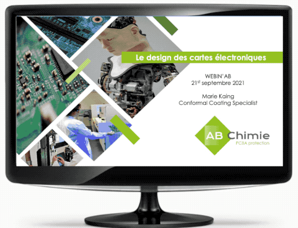 Afin de s’inscrire dans une collaboration technique plus distancielle, nous avons mis en place des Webinars Techniques dédiés aux résolutions de problèmes ou « trouble shooting » des vernis de protection des cartes électroniques. Liés à l’expérience des produits ABchimie, ces sessions techniques courtes et interactives ; ce sont légitimement appelées les Webin’AB.